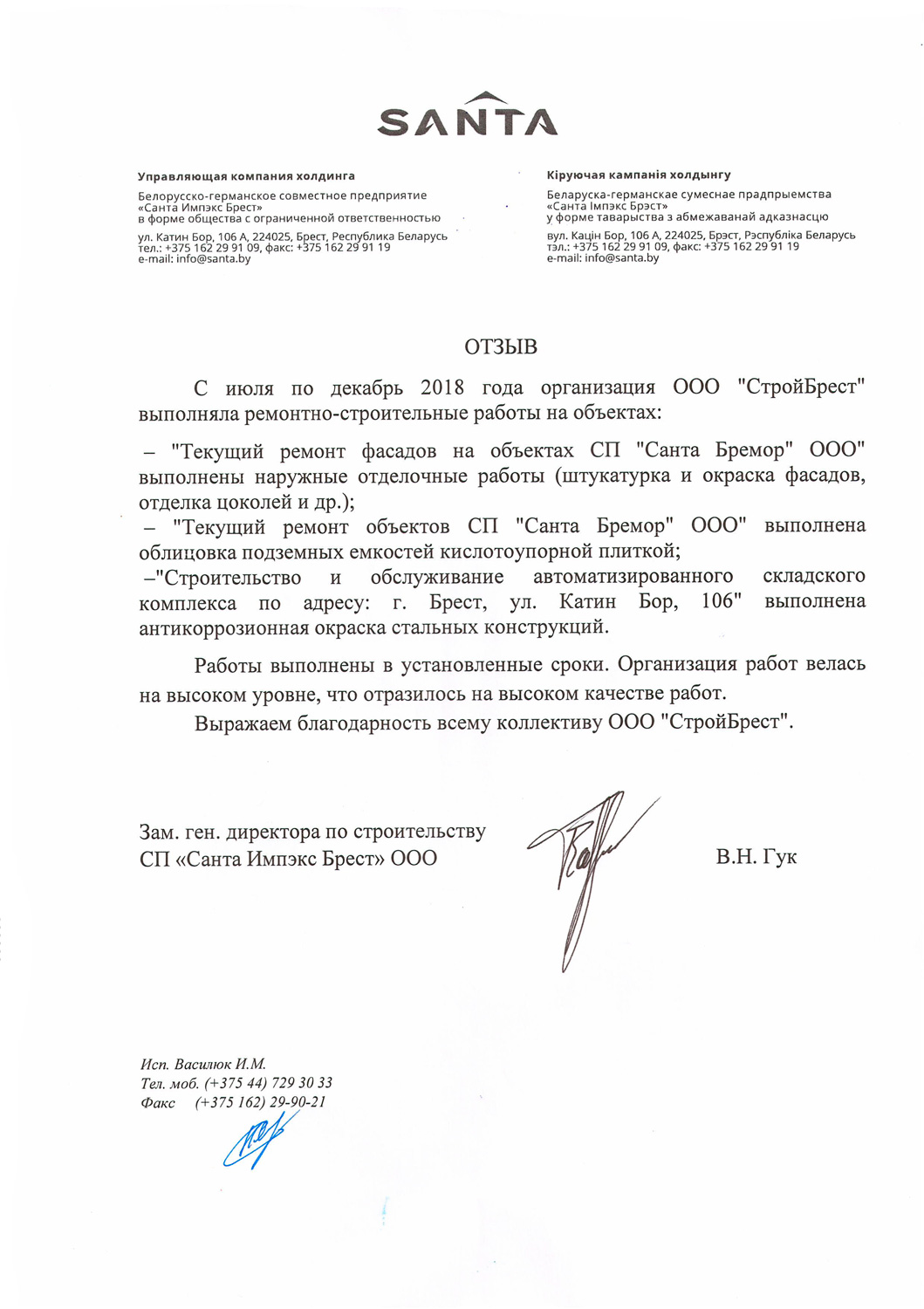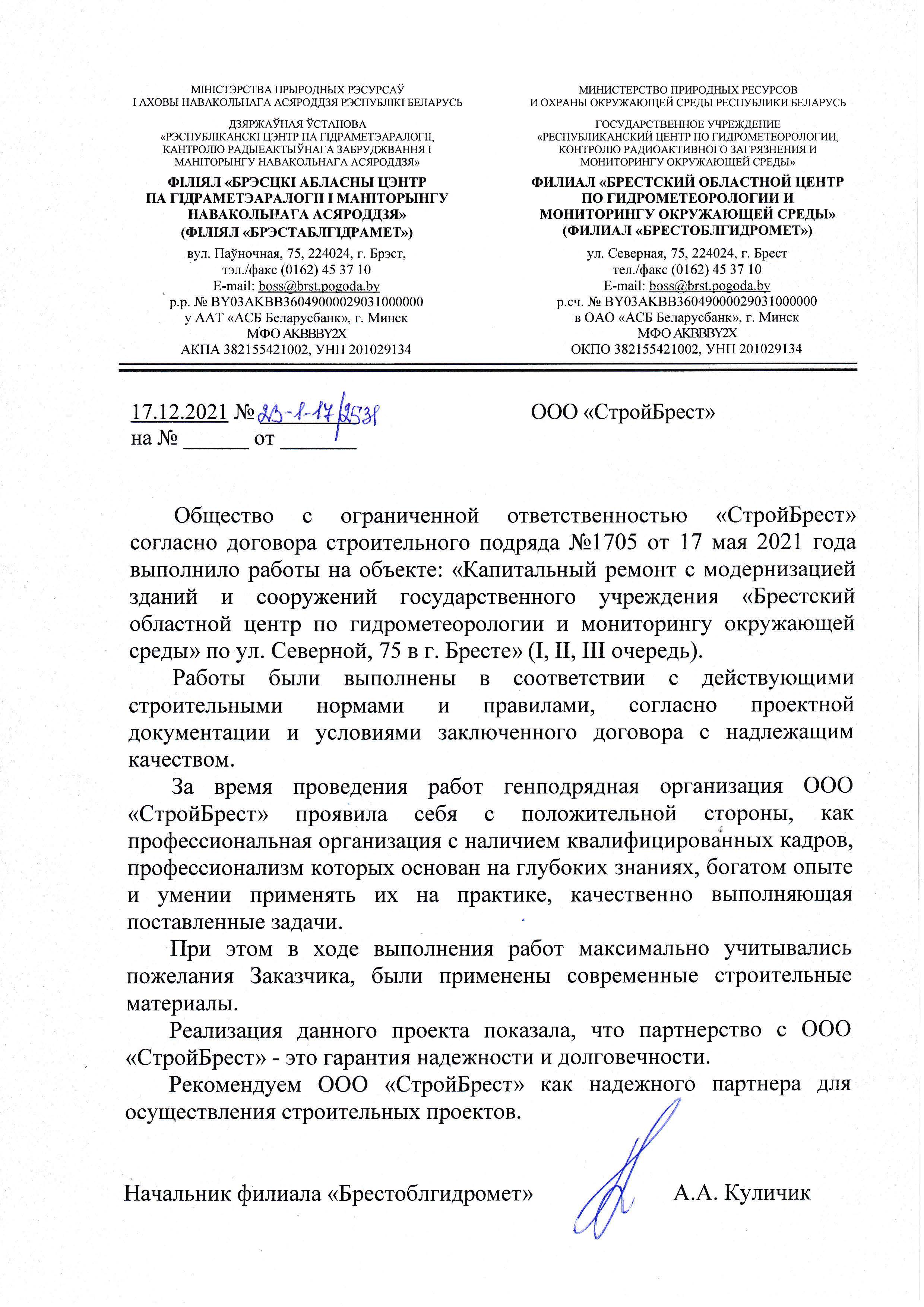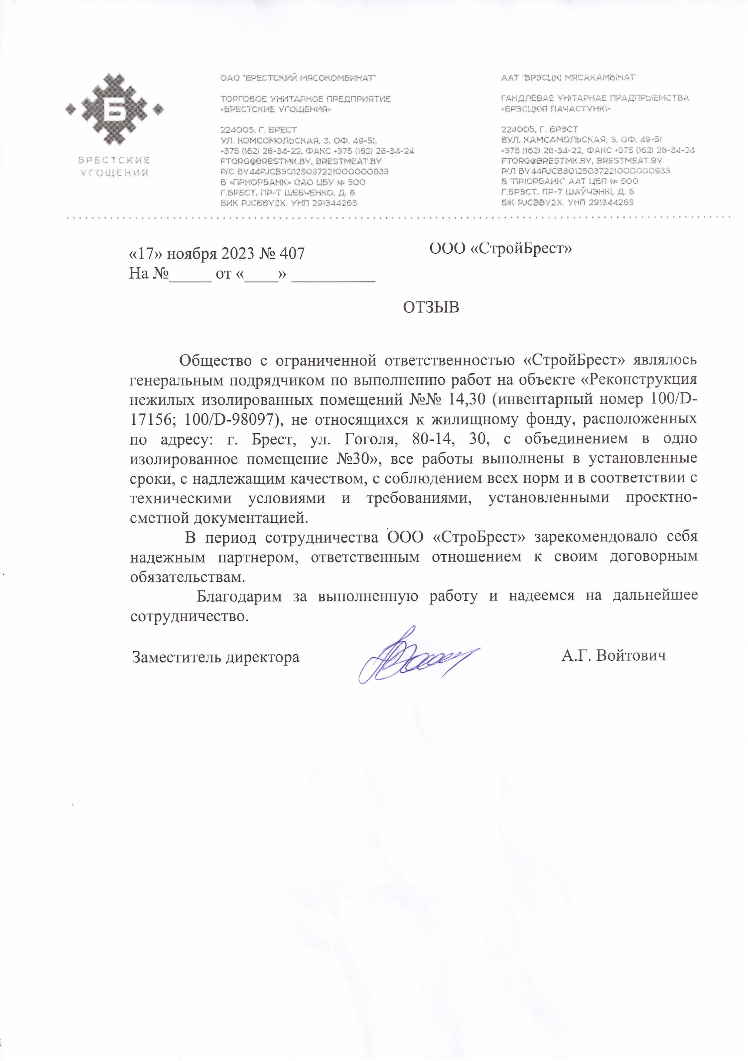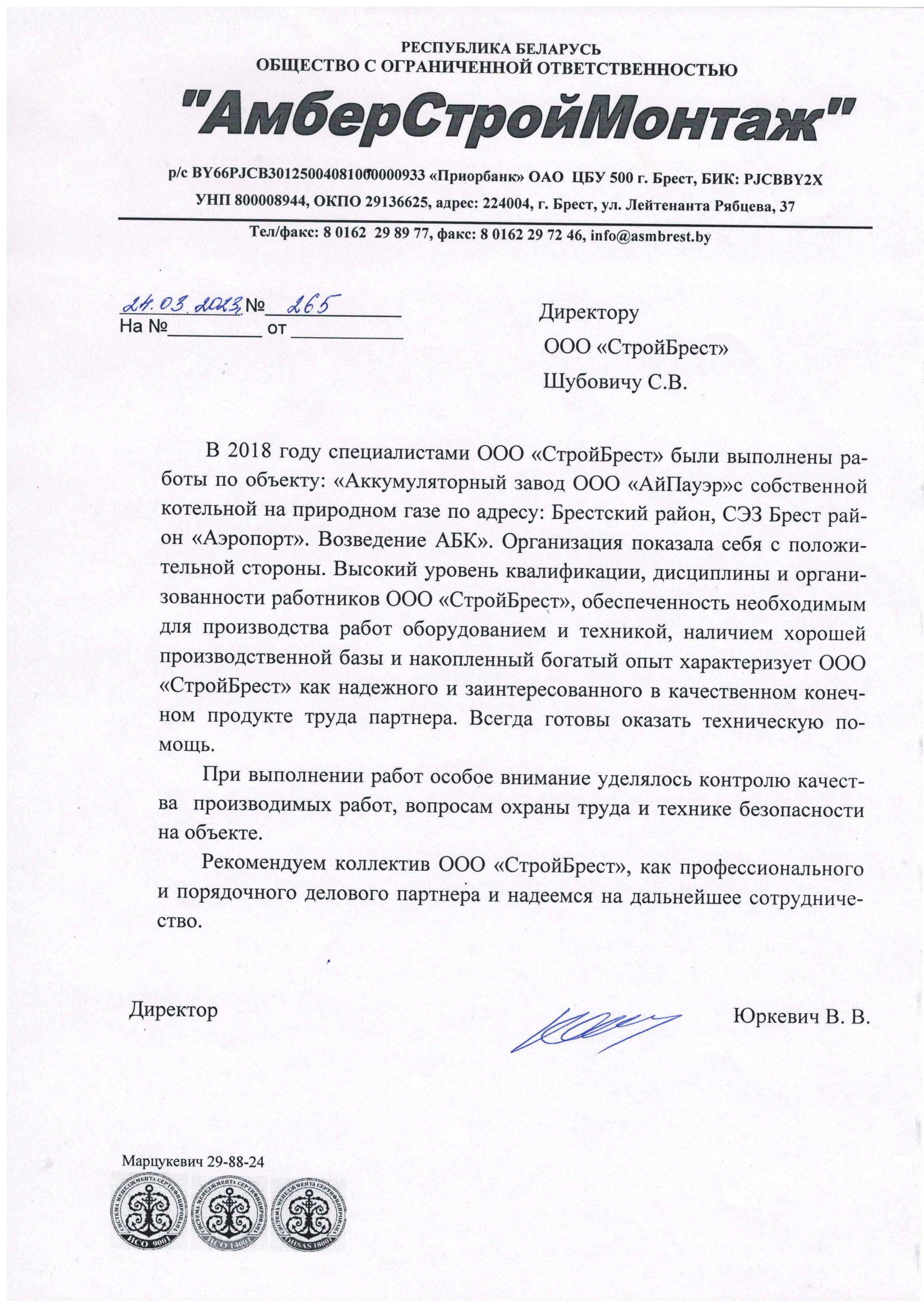 Мы стремимся стать лучше, поэтому собираем информацию о качестве предоставляемых нами услуг. Если Вы ранее уже работали с нами, то просим Вас оценить нашу работу. Это можно сделать направив письменный отзыв о нашей работе в произвольной форме на ooosbrest@gmail.com, либо, в соответствии с требованиями системы менеджмента качества, в представленной по данной ссылке форме: https://forms.gle/oKfMzkgSzCzZXUU77
